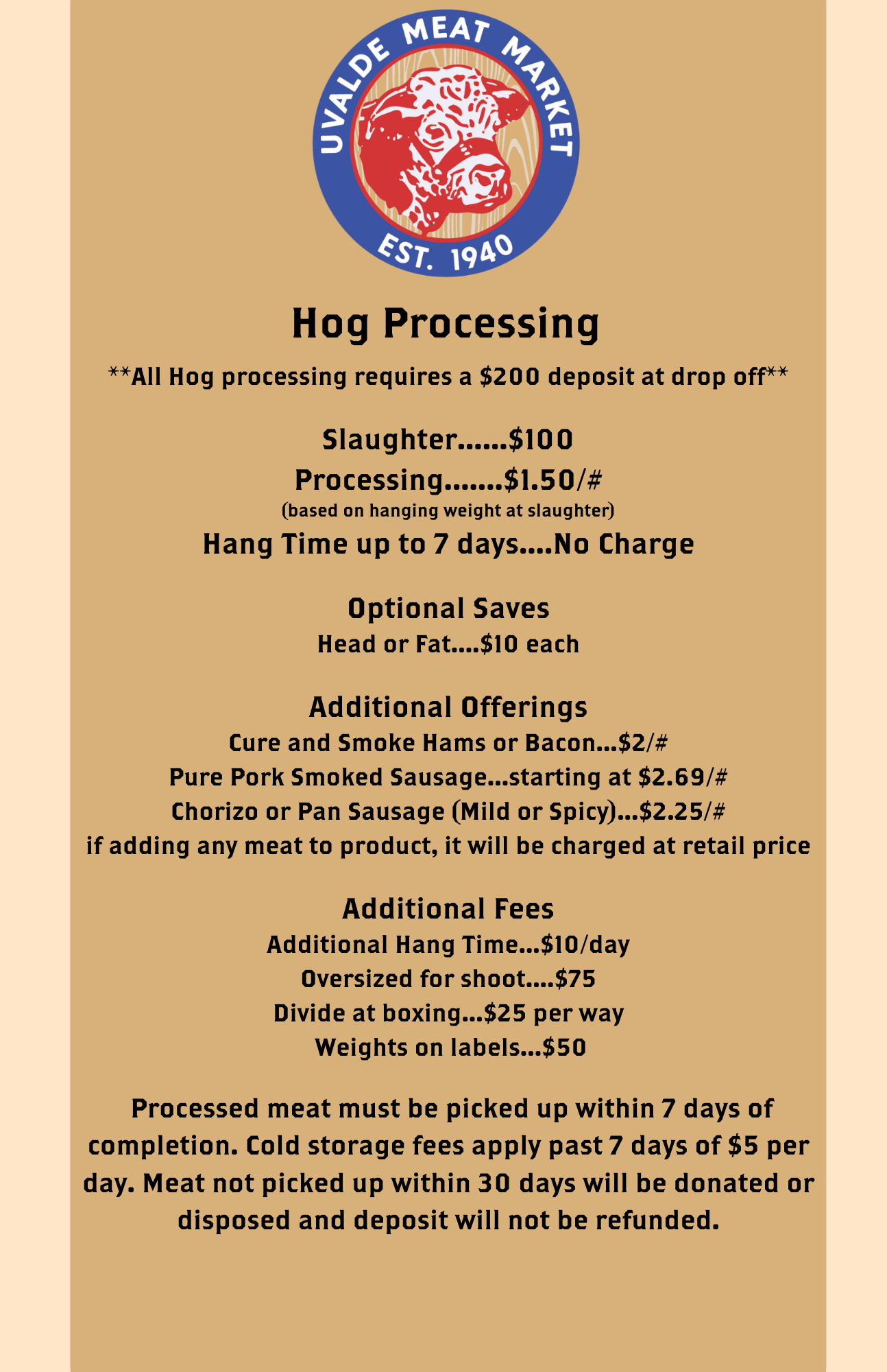 At Uvalde Meat Market & Processing, we offer slaughter services for a variety of animals. We can expertly process beef and hogs.